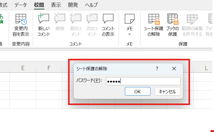 シート保護時に設定したパスワードを入力(パスワード入力が必要ない場合もあります)