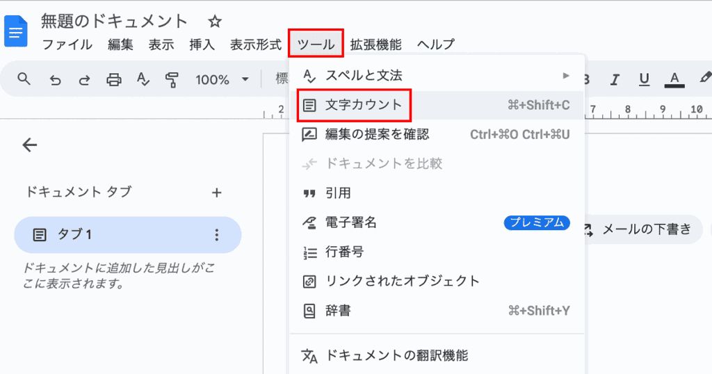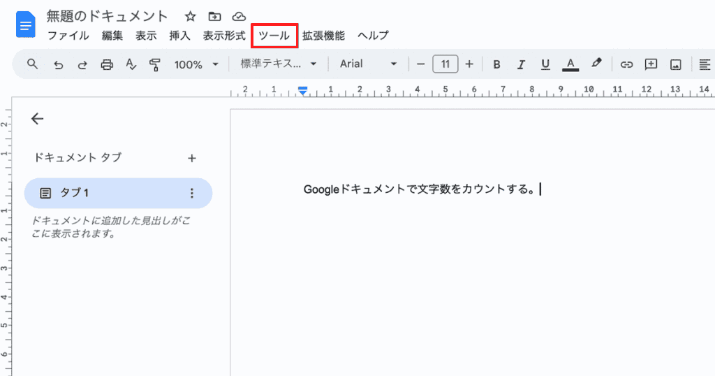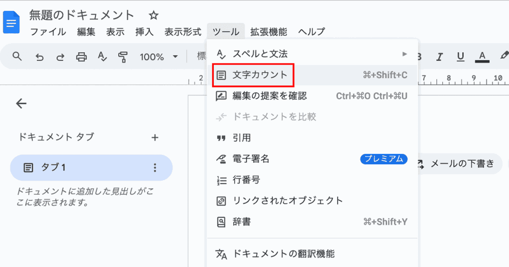Googleドキュメントで文字数がカウントできない時の基本のやり方は「ツールの文字カウントを使用すること」です。