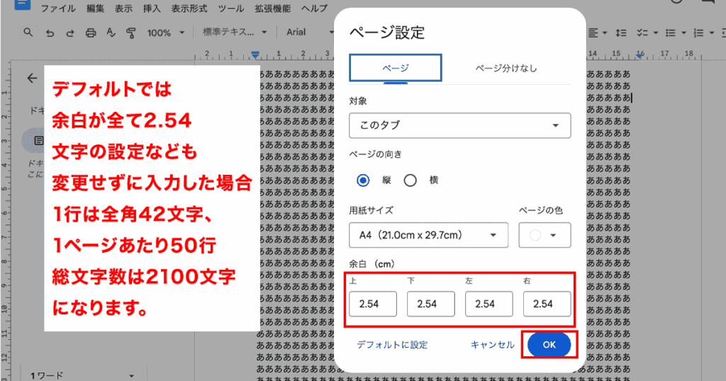 Googleドキュメントで文字数・行数の設定ができない・・・