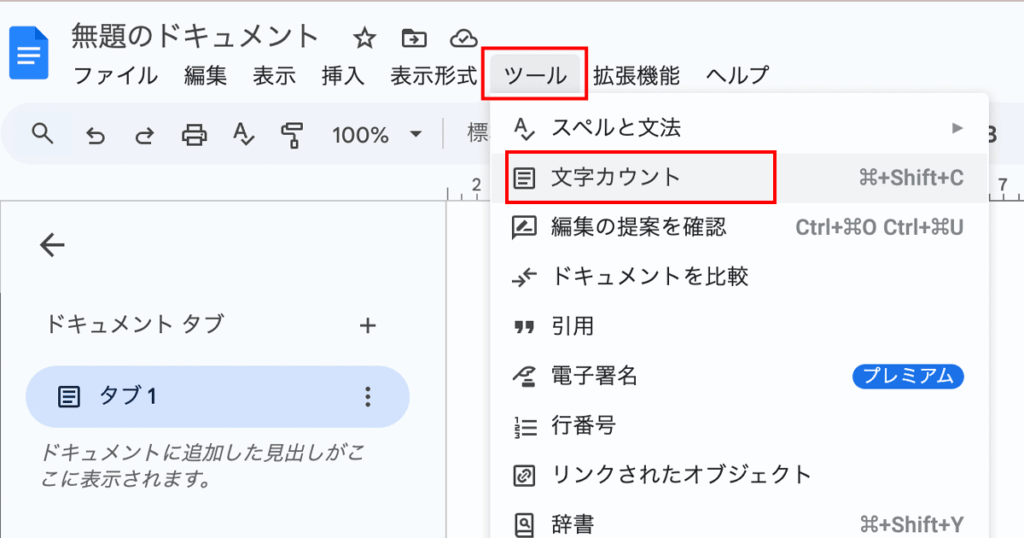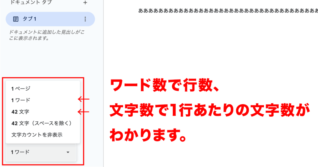 Googleドキュメントで文字数・行数の設定ができない時の基本のやり方は「文字カウントを確認すること」です。