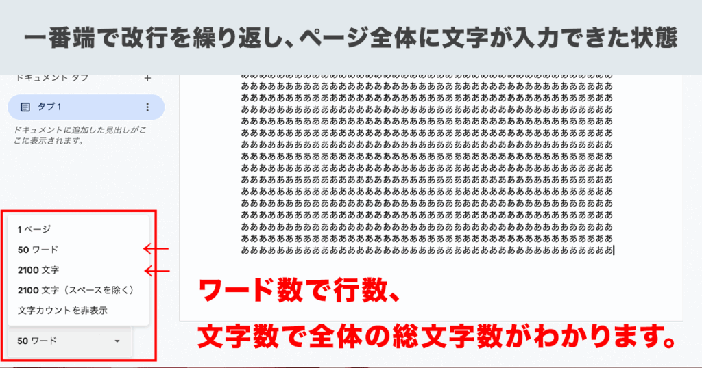 Googleドキュメント名で文字数・行数の設定ができない時の
