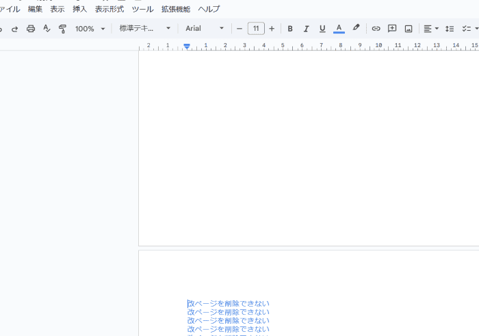 こんな風にGoogleドキュメントで「改ページを削除できない」と悩んでいる人もいるのではないでしょうか?