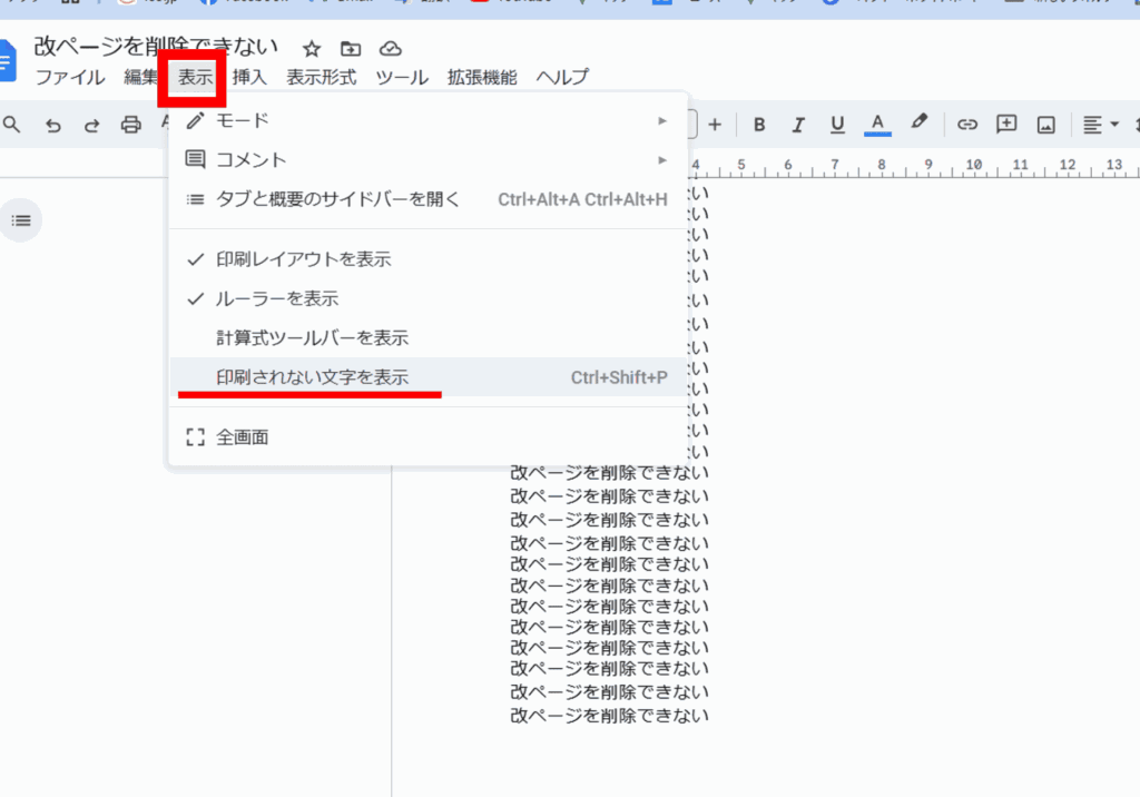 Googleドキュメントで改ページを削除できない時の基本の対処法