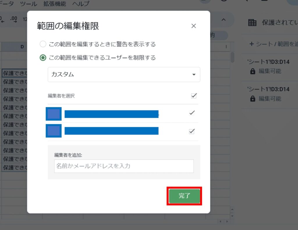 Googleスプレッドシートで保護できない時の