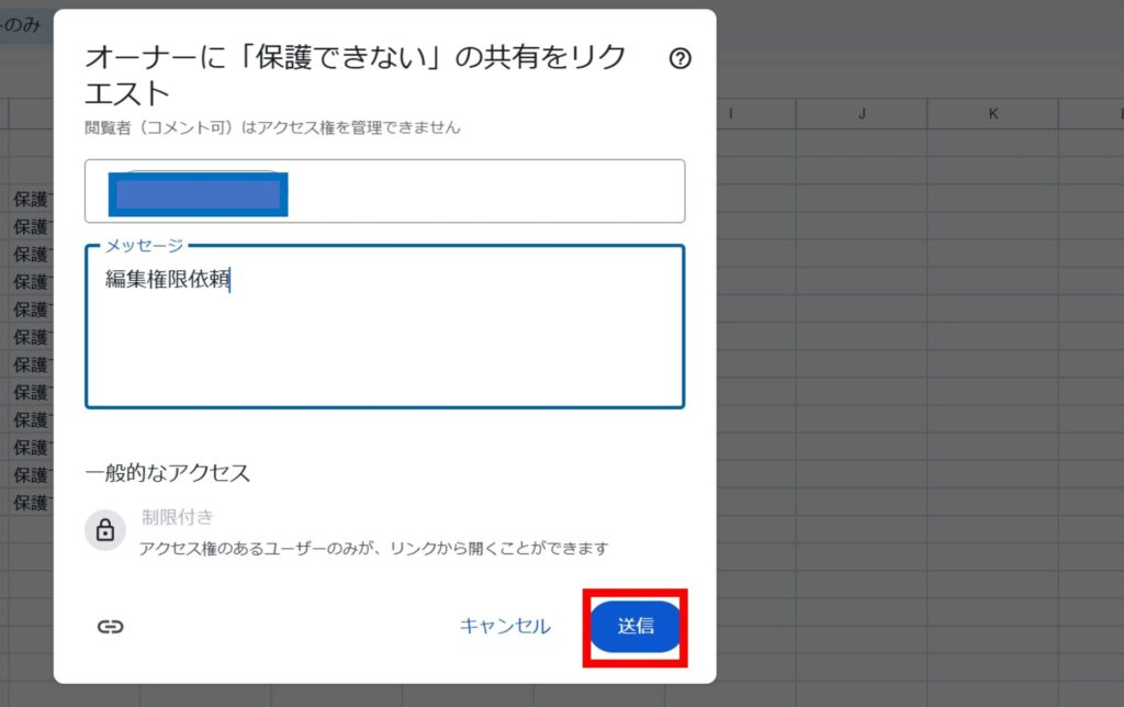 ・自分がスプレッドシートのオーナーでなく、編集権限がないため保護設定が変更できない